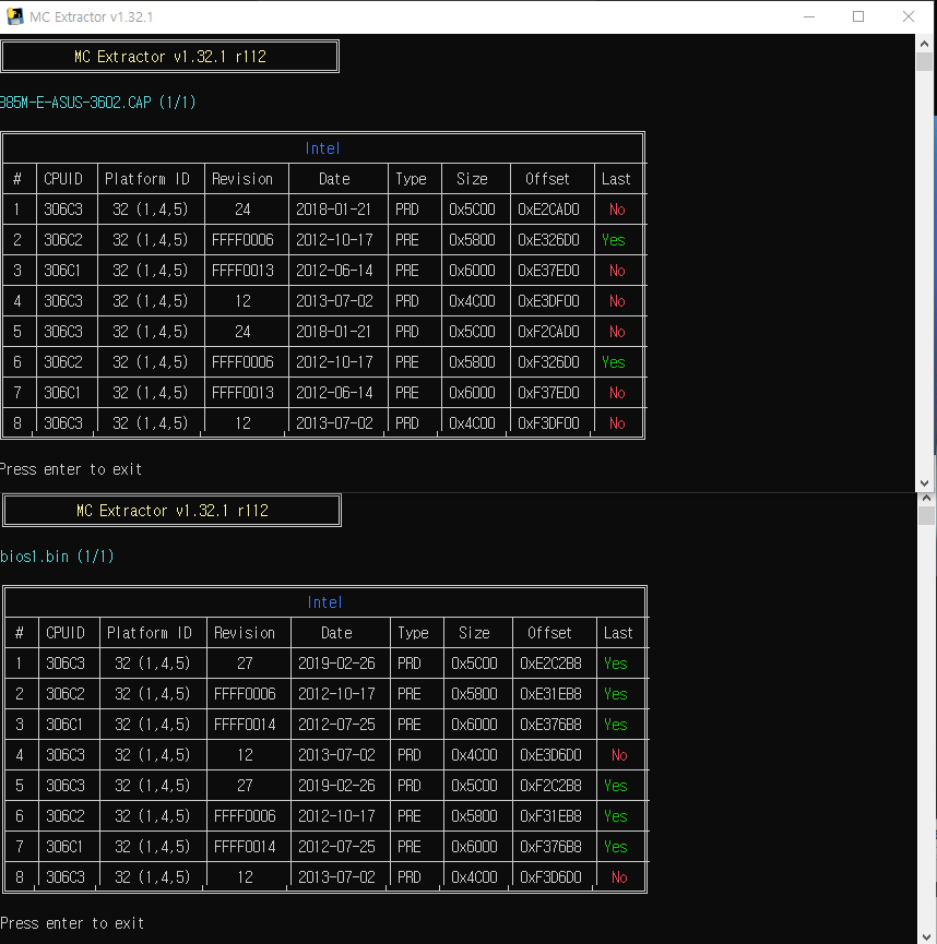 Asus 의 B85M-E 최신 바이오스에.