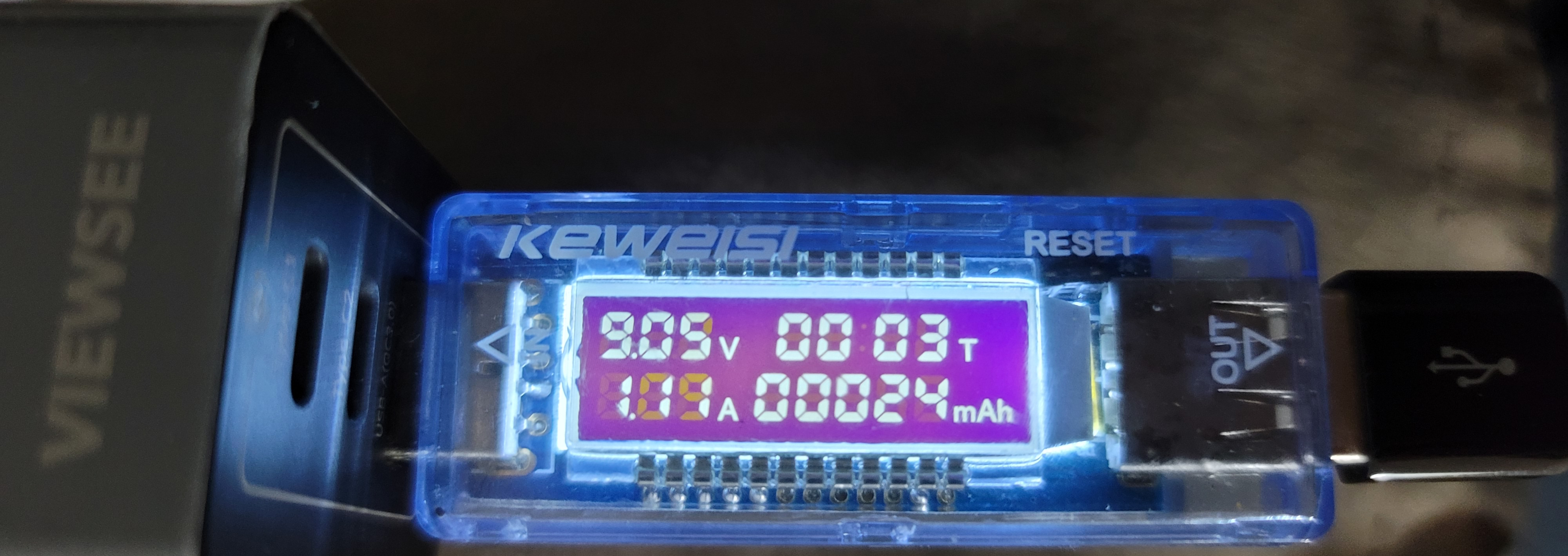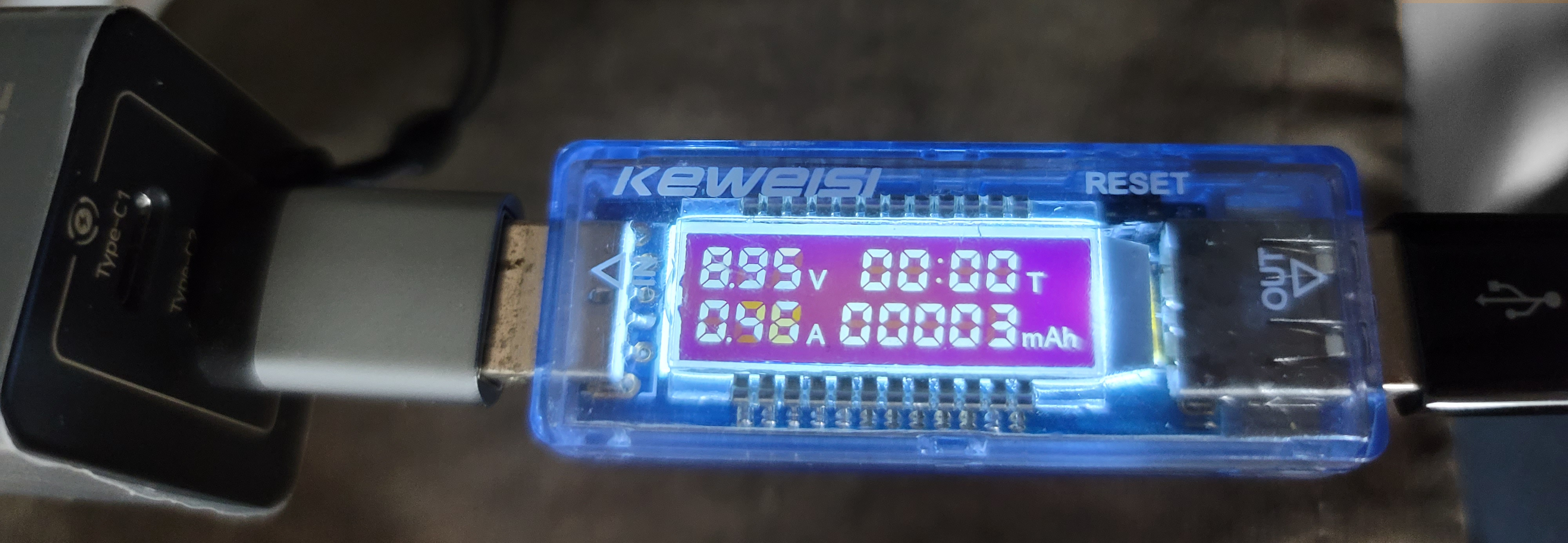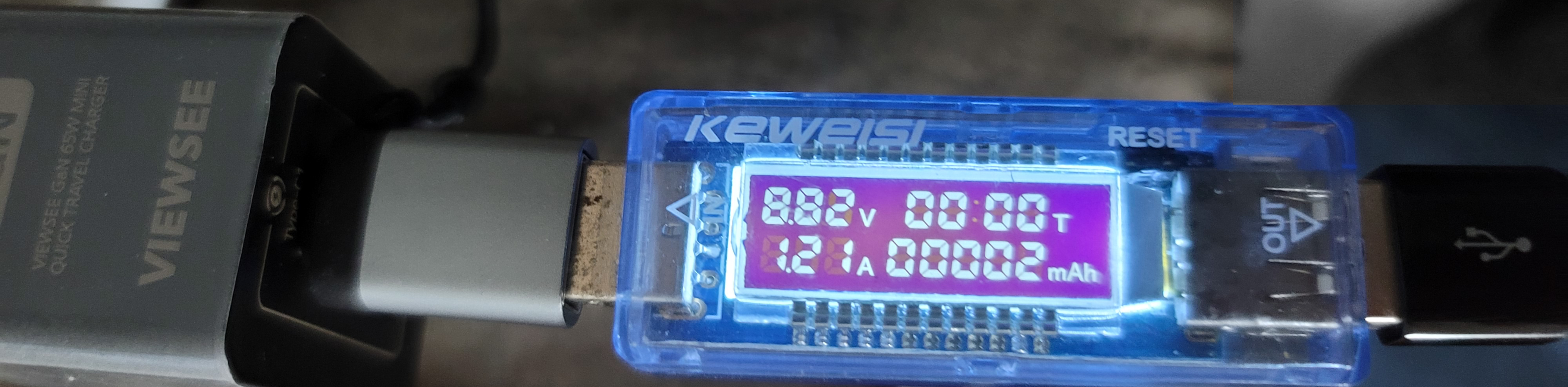 또한 USB 전류계가 C타입을 지원하지 않아 별도로 젠더를 이용하였고 이 때문에 충전 케이블도 최대 25W의 전력을 보낼 수 있다.