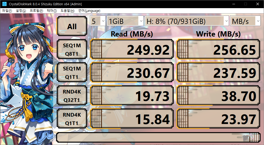 다만 SSD 임에도 불구 하고 4K속도가 현저하게 낮게 나온다.