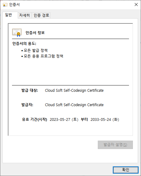 금번 버전부터는 셀프 코드사인 인증서 적용 및 파일을 하나로 통합 하였습니다.