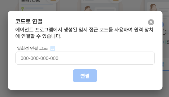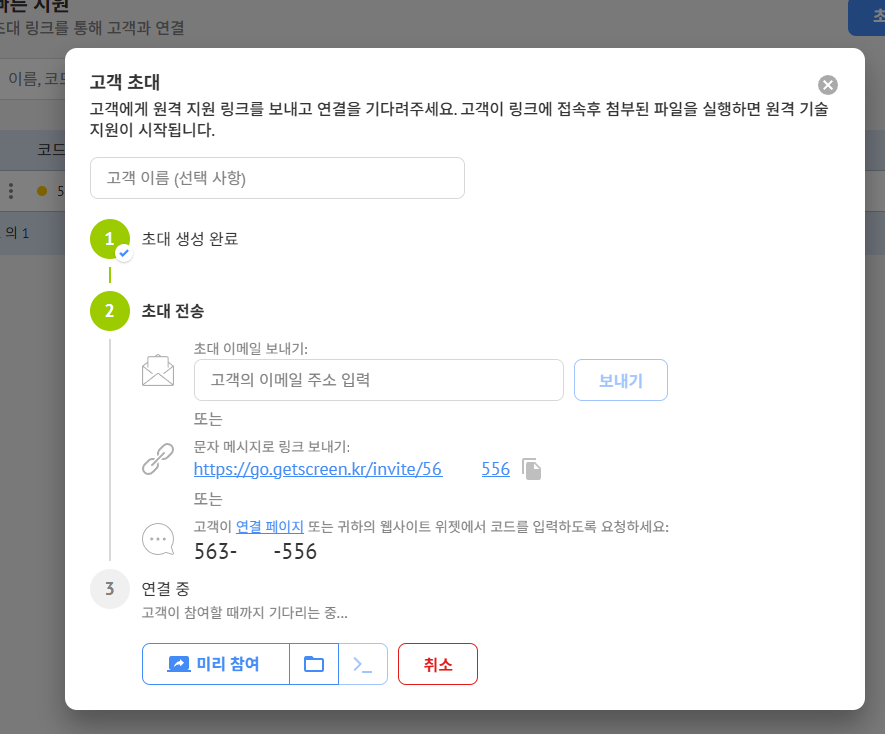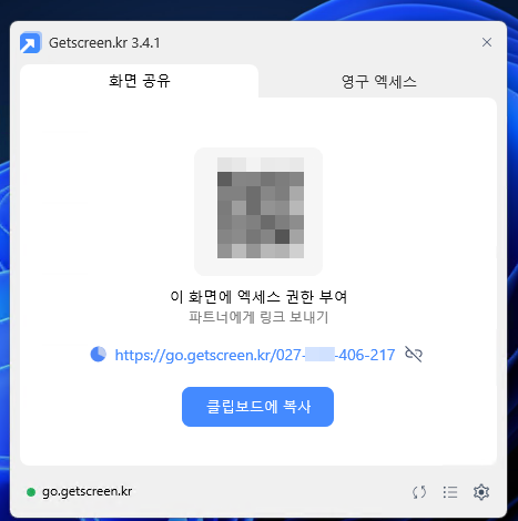 사용자 PC에서는 이런식으로 확인할 수 있고 아래 링크 형식에서 뒤에 표시된 000-000-000-000 과 같은 형태로 숫자 총 12자리의 코드가 생성되며 해당 코드를 이용하여 접속 할 수 있습니다.