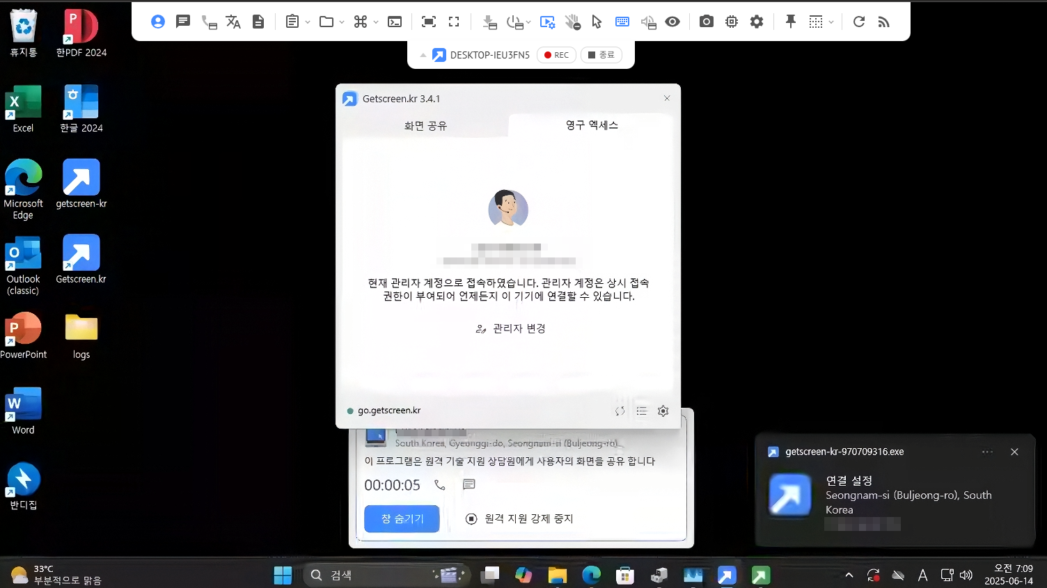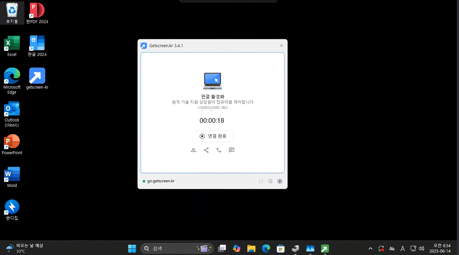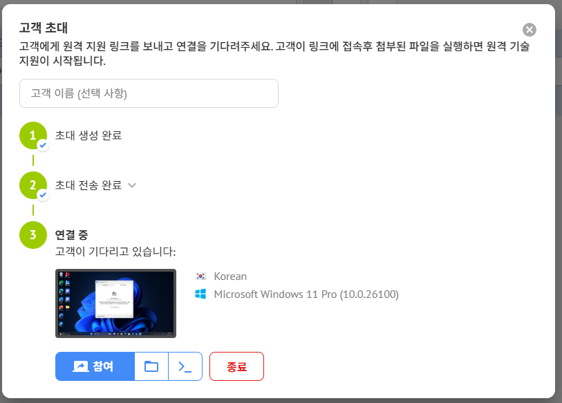 사용자에게 링크를 보내서 원격을 하면 아래와 같은 화면이 표시 됩니다.