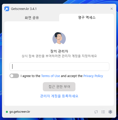 프로그램을 다운로드하고 "영구 엑세스" 항목에 관리자 아이디 입력 항목이 나옵니다.