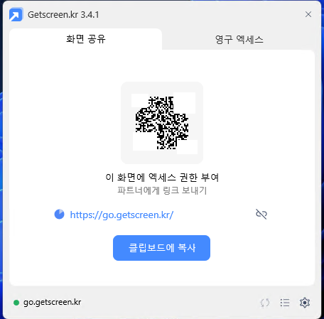 PC의 화면 공유기능을 사용하기 위해서 QR코드와 ID가 기입된 링크가 표시 됩니다.