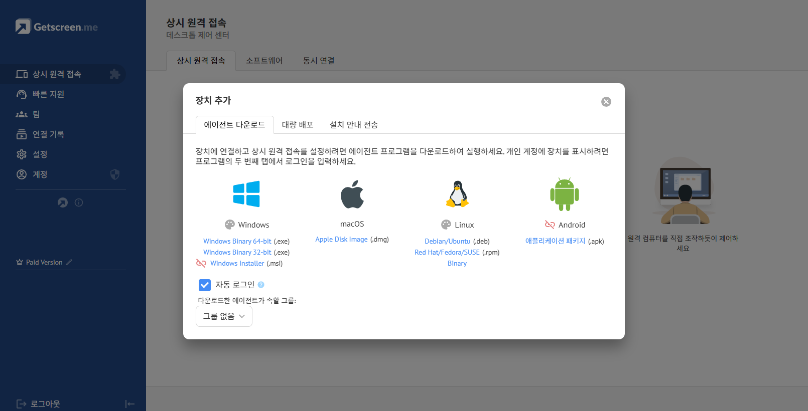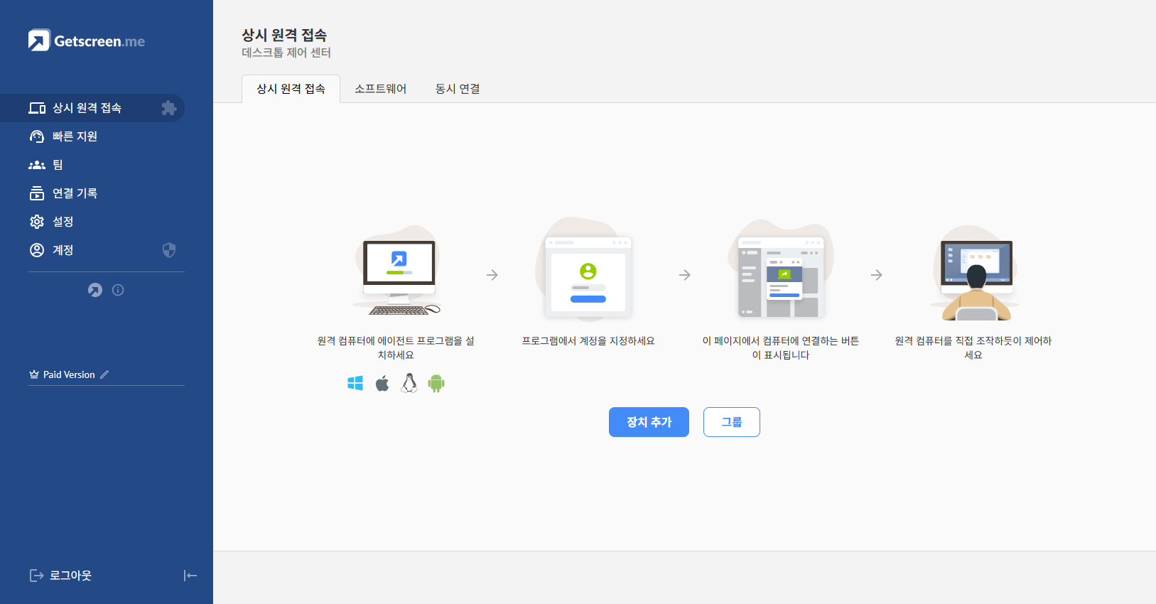 상시 원격 접속에서 "장치 추가"를 하기 위해서는 프로그램 설치가 필요합니다.