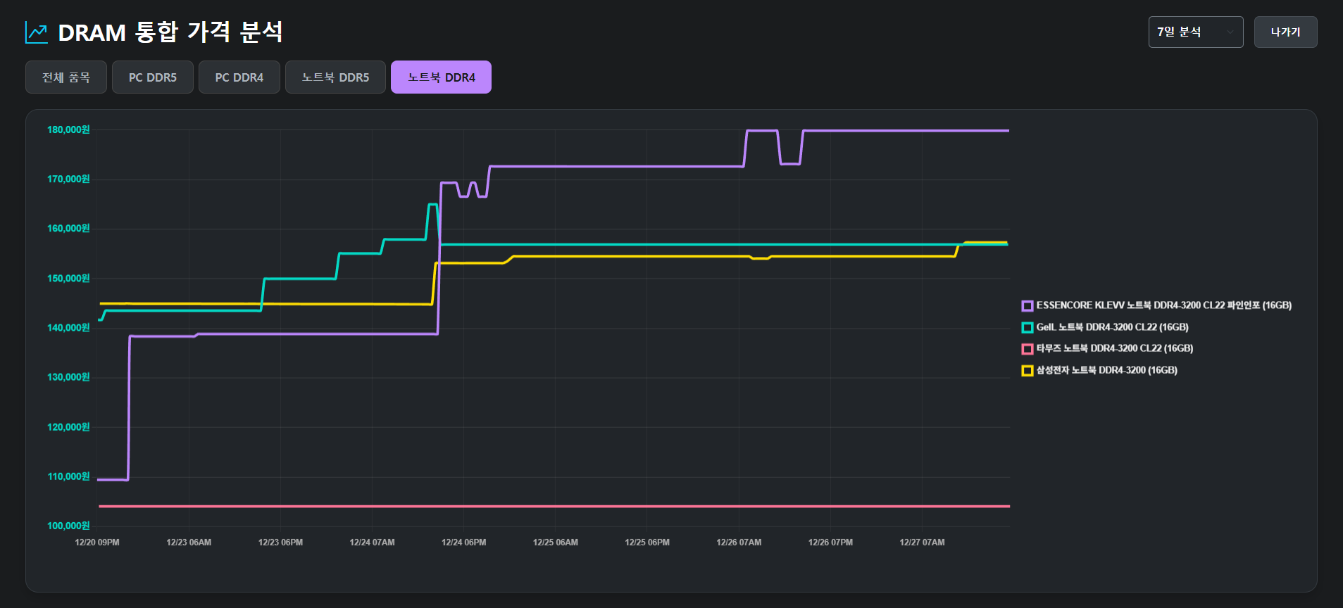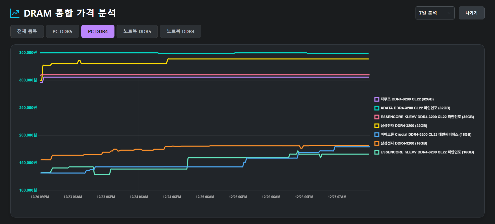 | 삼성전자 DDR4-3200 (16GB) | 182,030원 ▲ 2025-12-27 18:30:23 |